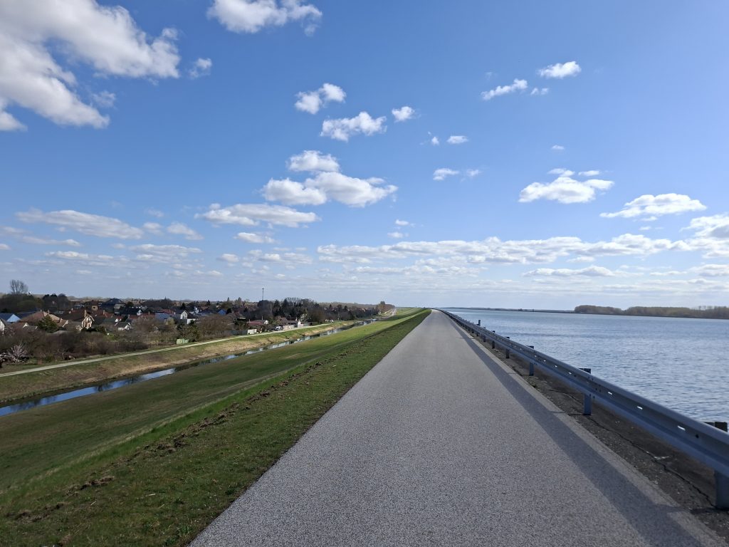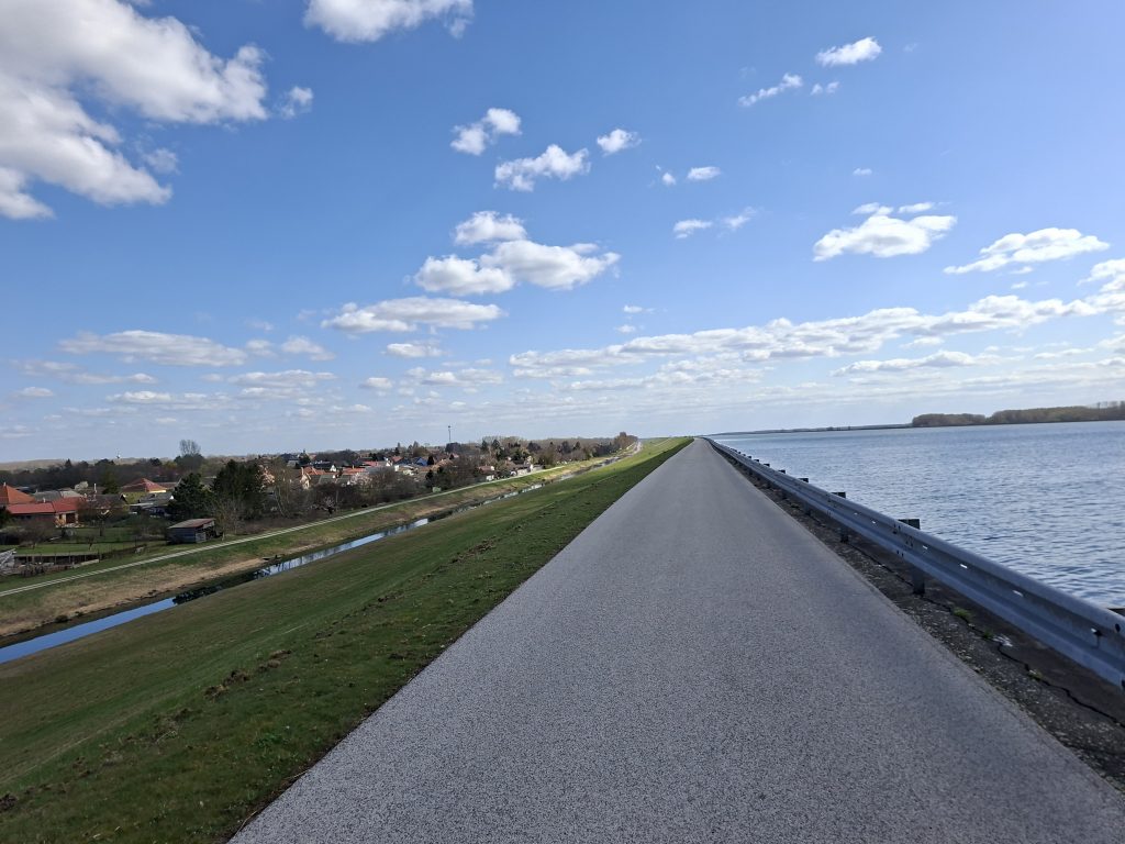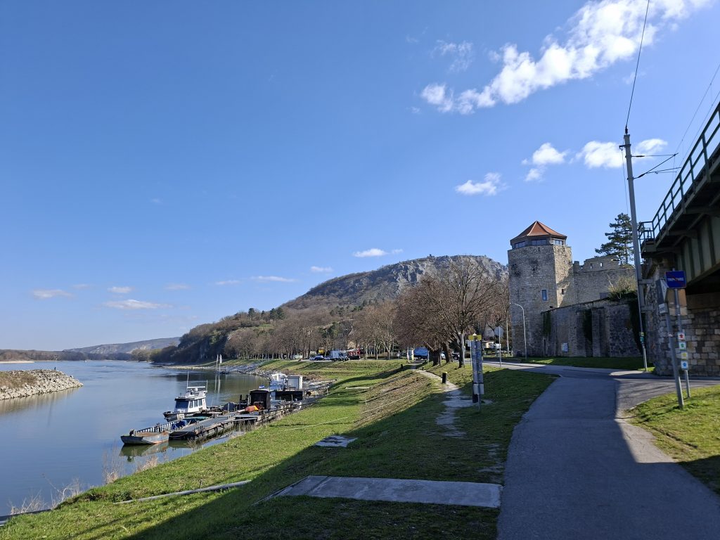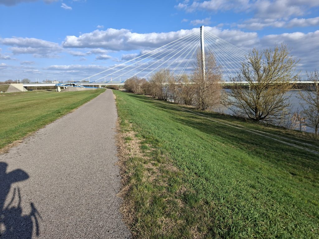 I took my first long break in a park on the Danube opposite Bratislava Castle. Just over 100 kilometres to go. EuroVelo Route 6 led past the city itself, but the skyscrapers were particularly visible from the bridge over the Danube. Soon I was back on the Danube and the next seemingly endless straight awaited me. Really varied is different. But it was still nice - if only it hadn't been for the headwind. It accompanied me all the way to Komárno with only a few interruptions.