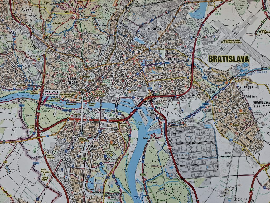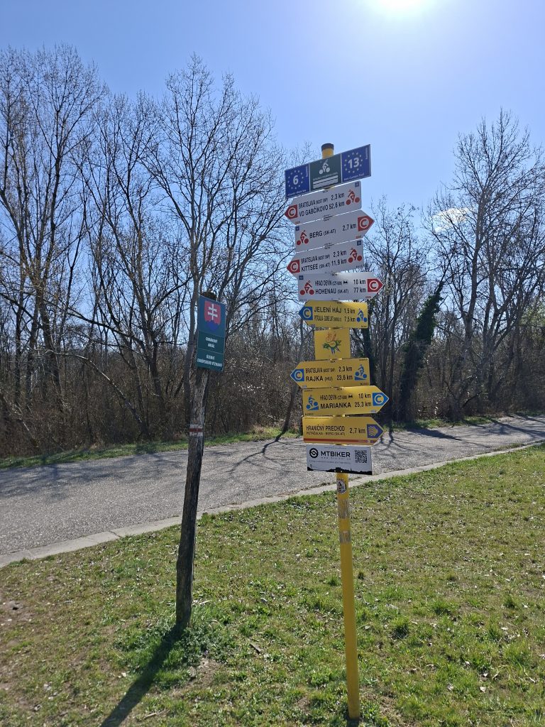 After the only small ascent of the day, I could already see Bratislava in the distance - and I wasn't far away from it either. When signs suddenly appeared next to the motorway that were no longer in German, I wondered whether I was already in Slovakia. At the next signpost, which was completely in Slovakian, there was also a map and the case was clear: I had already crossed the border without realising it. I guess that only happens in Europe!