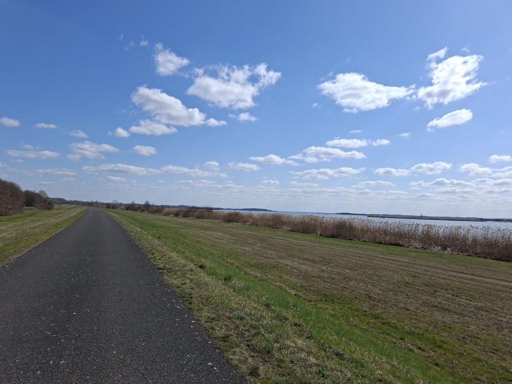 The main problem with the headwind for me is that it encourages me to ride too fast. «I'll show him!» or something like that. However, I calmed down a little and my heart rate dropped back to a reasonable level. However, I can't really relax in a headwind yet, I definitely still have potential. When the previously good road turned into a gravel track of the «horror» variety - I couldn't go faster than about 15 km/h because it was so uneven and full of stones, although my bike usually rolls very easily over gravel - I started to feel a little crisis coming on. Fortunately, there was a tarmac road that ran pretty much parallel to it. Despite all my love for EuroVelo 6, I left it as long as this road led in the same direction. A car overtaking every 3-4 minutes was definitely much more bearable.