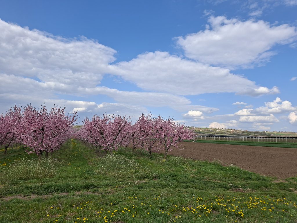 今天的云好漂亮,特别是在田野里,开花的果树那里。