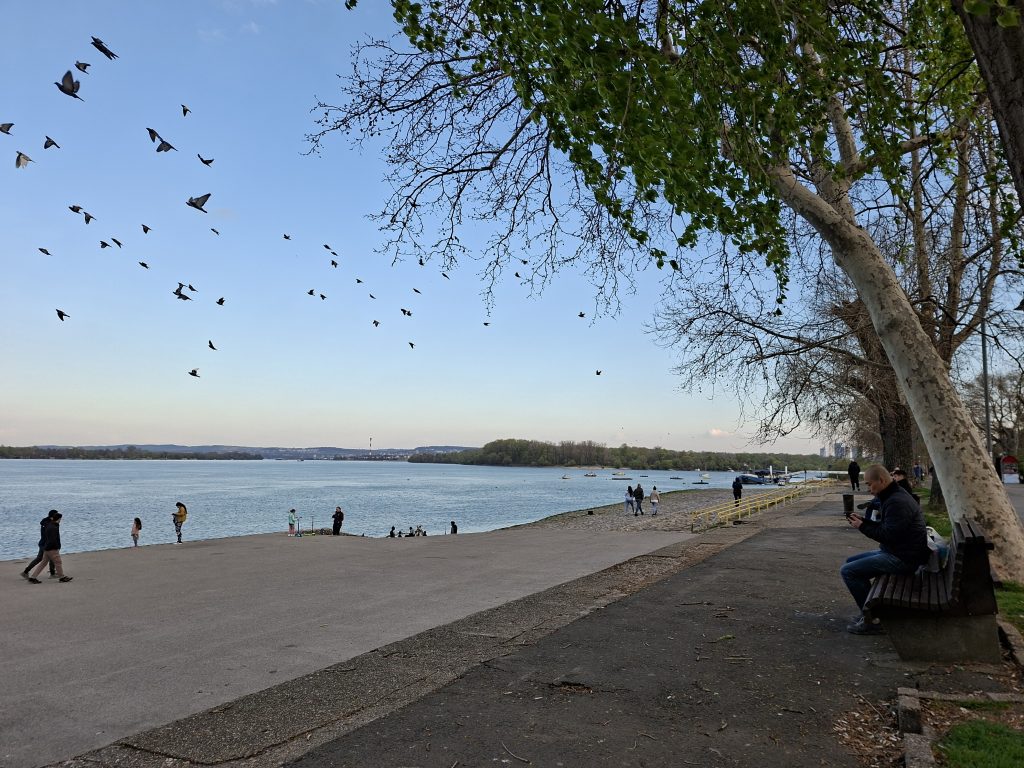The weather was nice again and warm today, so I took off my long clothes before the climb and rode in shorts and a short-sleeved jersey from then on. That made it even more fun. The wind was also a bit more varied today, I even felt like I had a tailwind most of the time. I made great progress with a low heart rate - I had learnt that lesson by now. And apart from a very short refreshment break standing up before the climb, I only took another break by the Danube about 11 kilometres before Belgrade and sat on something other than my bike for the first time.
