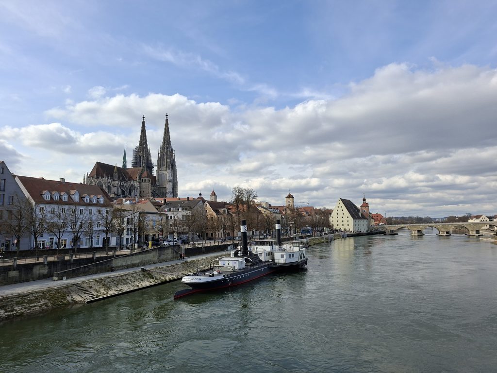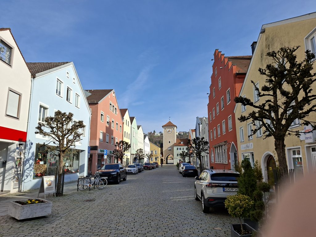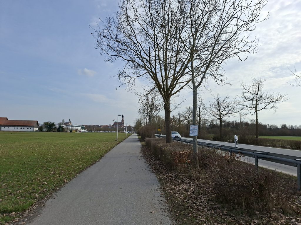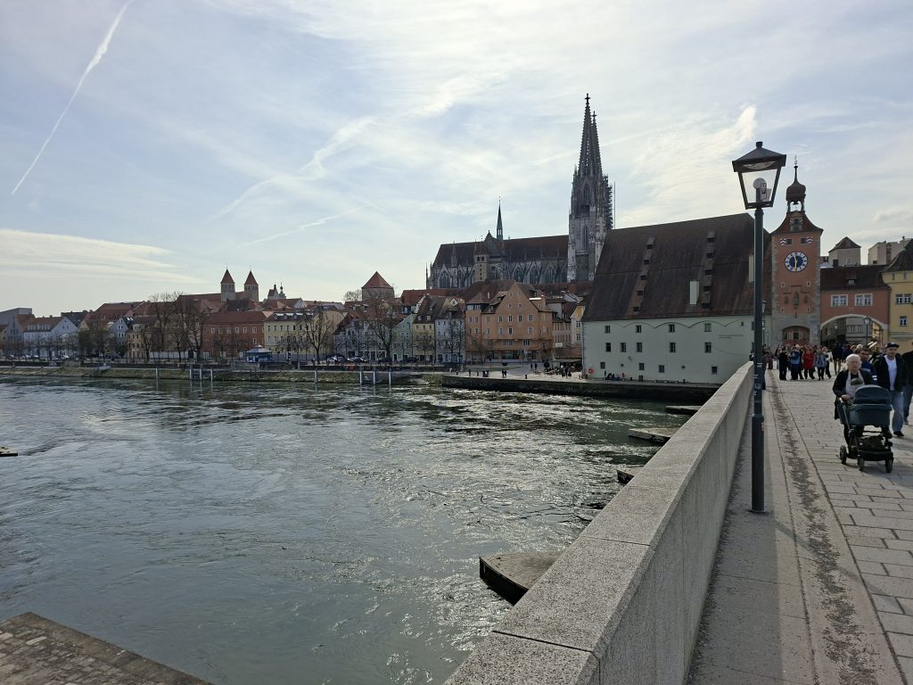 Nach weniger als 40 Kilometern war ich bereits in Regensburg. Bei Sonnenschein ;-). Was für eine schöne Stadt – mit vielen Touristen – einladend für eine Pause, doch für mich noch etwas früh für die Mittagspause, da ich heute schon um 09:20 losgefahren war. Was danach folgte ist der Traum jedes Fahrradfahrers: Sonnenschein, glatte, schnelle Strassen und ein bisschen Rückenwind. So rollte es zügig weiter Richtung Osten und es lief mir so gut, dass ich schlussendlich erst nach über 90 km für die erste grössere Pause anhielt. Umgeben von vielen Leuten liess ich mir mein Mittagessen inmitten von Straubing schmecken. Das kleine Städtchen, welches ich vorher nur wegen des Eishockeyteams kannte, ist sehr sauber und hat schicke farbige Häuser, so wie viele der kleinen Städtchen auf meinem Weg.