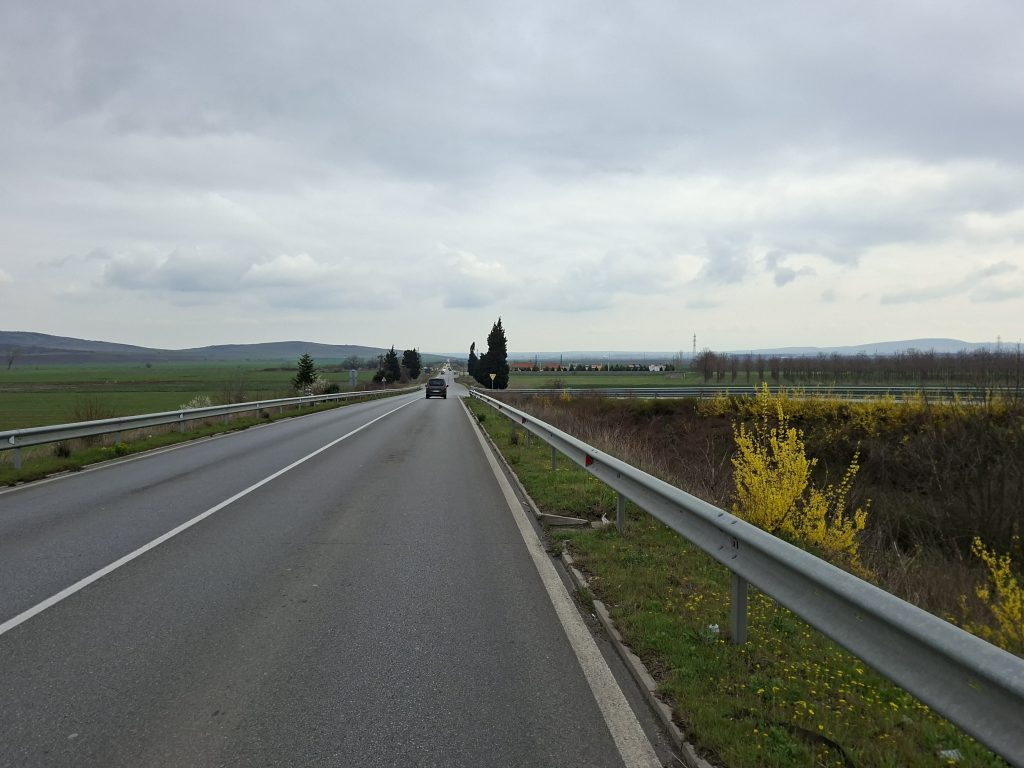 Als es in Bulgarien nach 20 Minuten Fährfahrt weiter ging winkte mich die Zollbeamtin durch, während die beiden Autos anscheinend genauer kontrolliert wurden. Nun war es vorbei mit dem exzellenten Rückenwind, denn ich fuhr nicht mehr genau nach Osten, während der Wind noch immer aus der gleichen Richtung kam. Auch die Strassen waren deutlich schlechter als noch in Rumänien, so holperte es zeitweise etwas schleppend vorwärts. Doch ich hatte ja Zeit. Und während ich am Anfang meiner Reise noch auf den Puls schauen musste, war ich jetzt automatisch in einem tiefen Pulsbereich und entspannt unterwegs.
