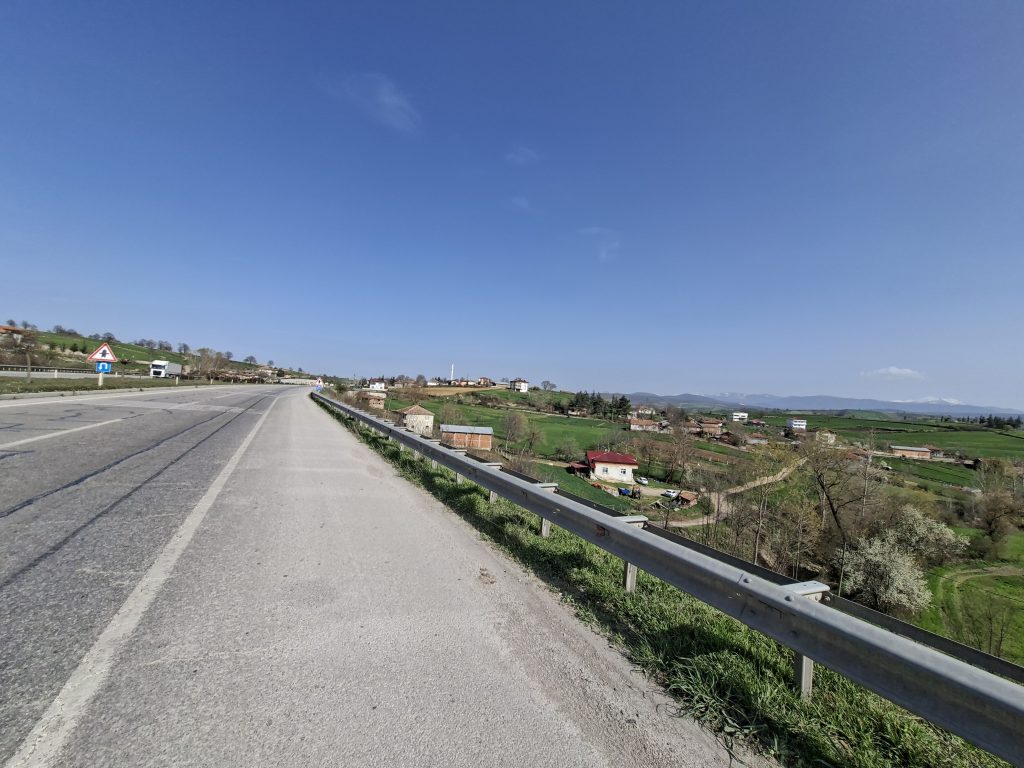 Der Grund, warum ich erst in Havza essen wollte war, dass ich dachte es gehe ab Havza wieder runter – mit vollem Magen geht runter fahren noch, aber Anstiege sind etwas weniger angenehm. Da hatte ich mich aber gewaltig getäuscht. Der Anstieg wollte und wollte nicht aufhören. Ausserdem hatten wir so extrem starken Gegenwind, dass es mir glatt die Socken ausgezogen hätte, wenn ich denn keine Schuhe getragen hätte. Selbst bei flachen Abschnitten kamen wir so nur im Schritttempo voran.