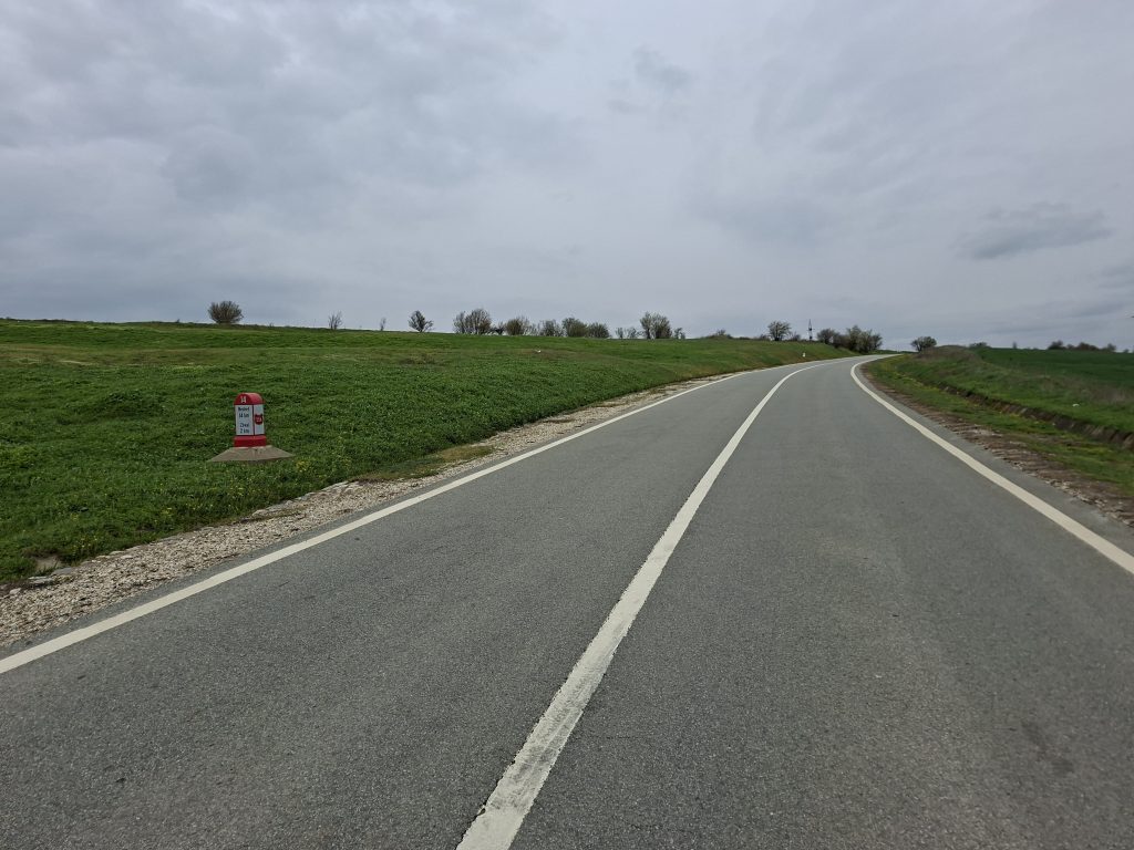 在卡拉法特稍作游览后,我继续沿着同一条路前往贝谢特,路标指示着我还有多远的路要走。得益于强劲的顺风,今天是“加”速度模式。然而,没过多久,我又发现后轮胎气压不足。昨天的修补最终还是失败了。我之前就预感到会出问题。路边的小候车亭真是帮了大忙:我可以舒舒服服地坐在那里,既能避雨,又能处理后轮胎。不过这次我没有补胎,而是直接换上了出发前就准备好的备用胎。